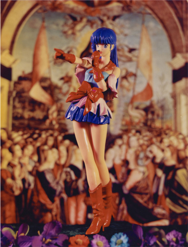 | 作品描述 | 〈美少女戰士〉,〈林明美〉、〈春麗〉、〈綾波玲〉等四件作品,都是完成於1999年的攝影與電腦影像合成圖像。這四位主角都是日本卡通漫畫、動畫、以及電玩遊戲當中美少女偶像 ,她們所扮演的角色,都是未來宇宙的新世紀聖戰士,而且,身負解救人類命運的重責大任,堪稱未來世界的彌賽亞。洪東祿以一種後現代的創作手法,挪借了這四位美少女戰士的形象,並加以變裝改扮,以符合他創作所需。